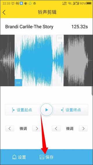 4、进入铃声编辑界面后,你可以对铃声进行剪辑操作,完成后点击底部的保存按钮即可。