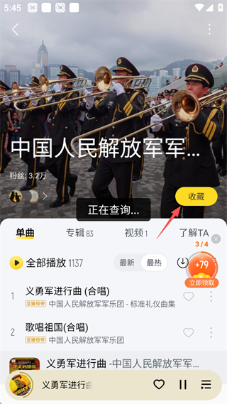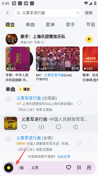 2、点击屏幕下方的正在播放的歌曲。