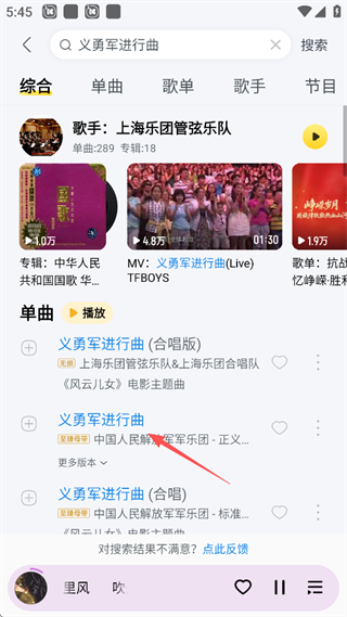 1、点击需要关注的歌手的歌曲,也可以通过点击屏幕上方的搜索框直接搜索歌手。