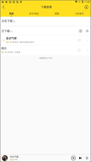 6、点击后,相应歌曲便会出现在此处,如此就支持离线听歌啦。