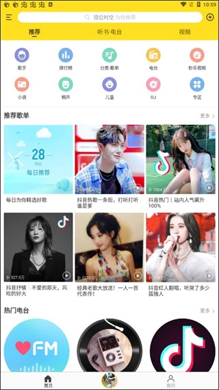 1、在主页上,能够听到许多不同类型的歌曲。