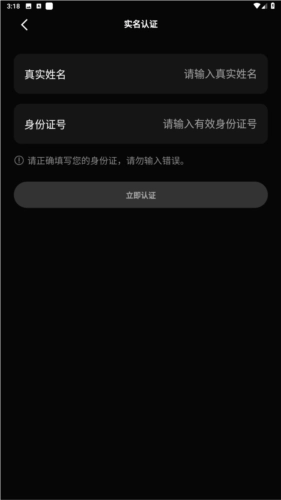 2、进入实名认证页面,输入手机号与验证码后,点击“立即认证”按钮。