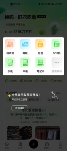 换吗是郑州换吗信息科技有限公司推出的线上旧物回收应用,主要面向有闲置物品处理需求的用户。这款软件功能丰富,除了旧衣服回收,还支持鞋子、手机、平板、电脑等多种物品的二手回收服务。在回收流程中,平台会依据物品的实际价值、新旧程度等因素进行专业估值,帮助用户快速处理家中闲置不用的物品,高效解决旧衣物堆积问题,让用户轻松实现断舍离,合理处置各类闲置物品。