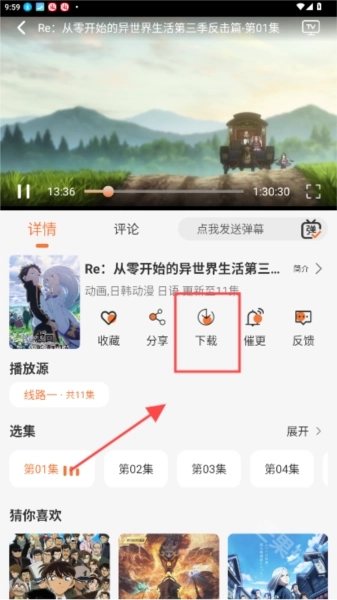 对于喜欢的动漫,还可以在其详情界面点击图标,将动漫缓存下来。