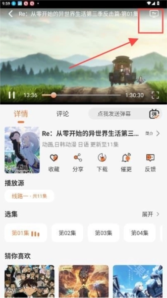 先确认手机和投屏设备处于同一网络环境,接着就能把动漫投屏到电视上,尽情体验大屏追番的快乐啦