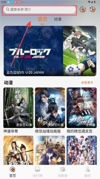 在软件首页搜索框输入动漫名称,点击搜索即可查找想看的动漫。