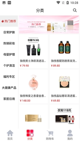 3、点击底部的分类栏,就能按照商品的种类查看对应的产品。
