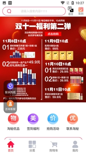 2、在首页可以看到各种活动优惠信息和签到福利。