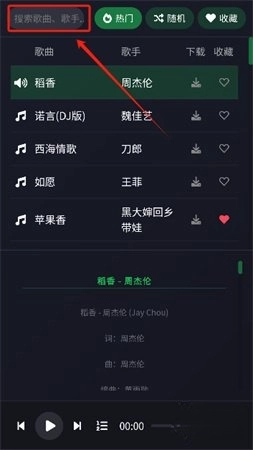 要是想收听特定的歌曲,你可以点击左上角的搜索栏来进行查找。
