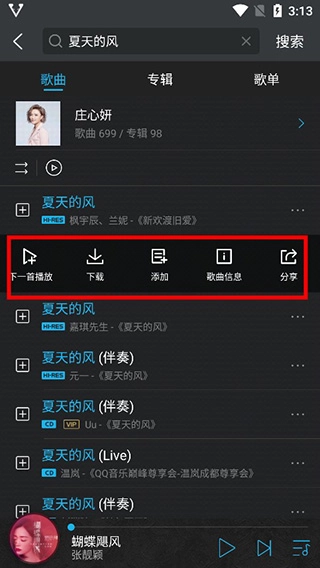 3、在众多搜索结果里点击歌曲就能播放,还能分享歌曲;