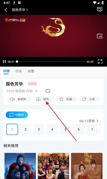 想离线观看影片的话,在播放页面点击缓存按钮,然后选择需要的集数就行,支持单集缓存或者整季缓存。