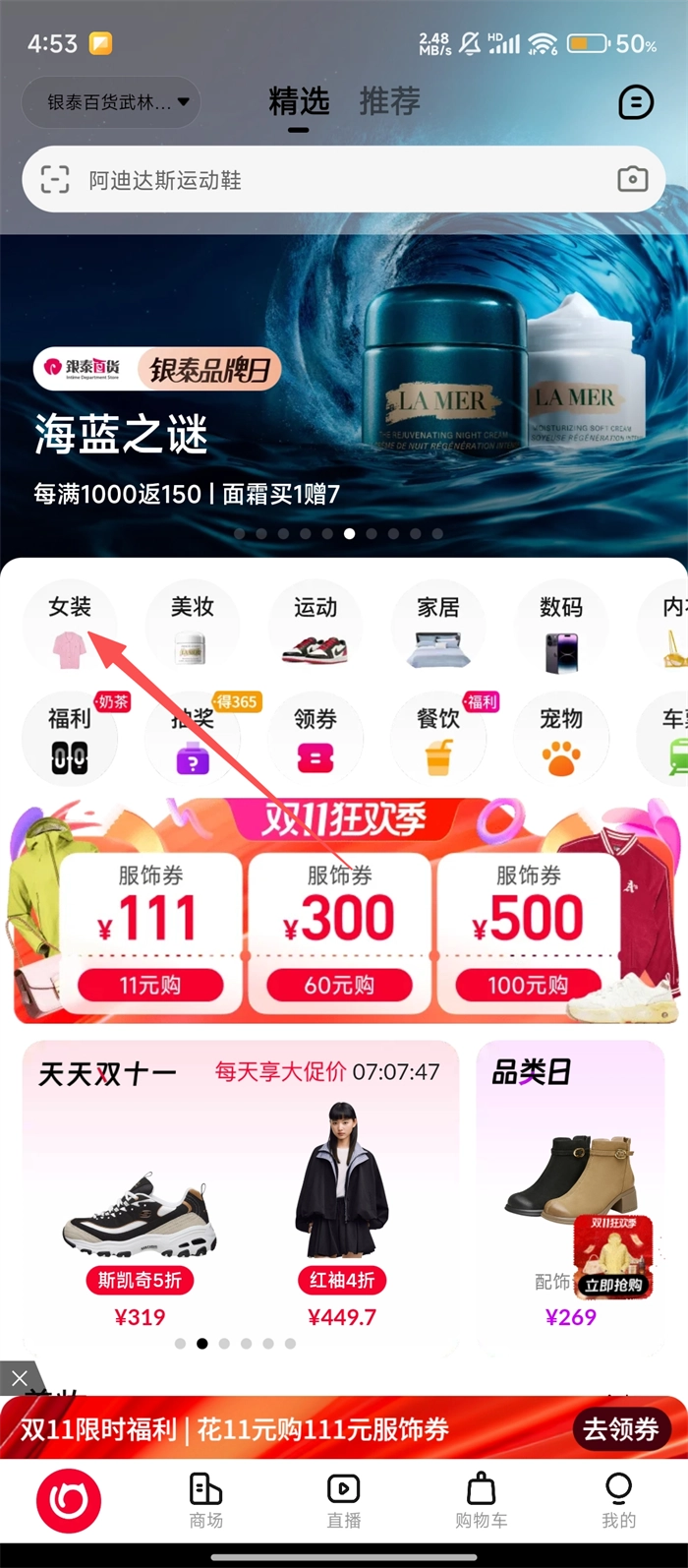 打开喵街APP,进入首页后点击【女装】分类入口,即可开启时尚穿搭的选购之旅,这里有各式各样的女装款式供你随心挑选。