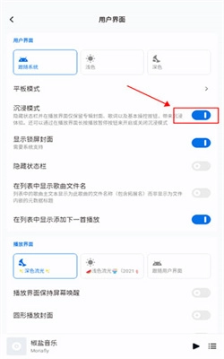 4、进入用户界面设置后,找到沉浸模式选项,点击其对应的开关按钮。
