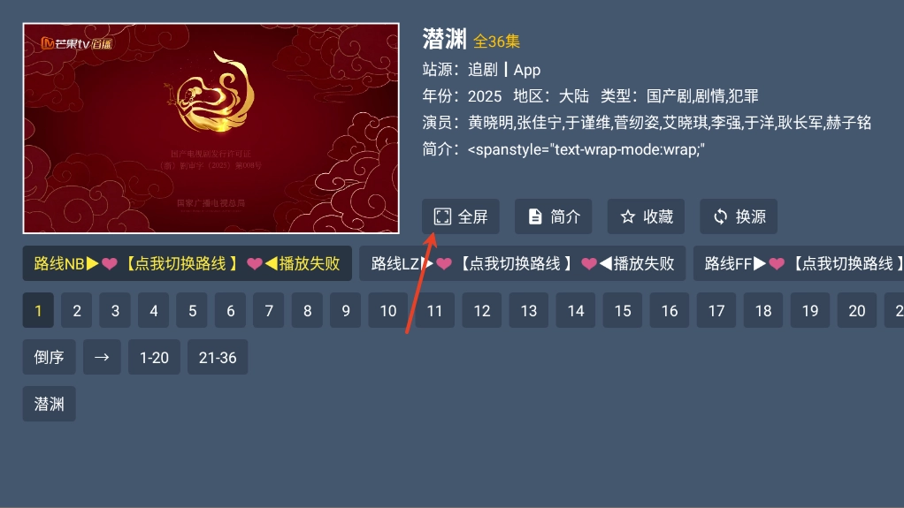 在搜索结果里定位到目标作品后,点击进入其详情页面。接着找到并点击“全屏”按钮,就能开启大屏模式进行观看了。