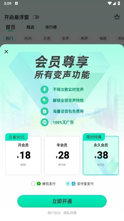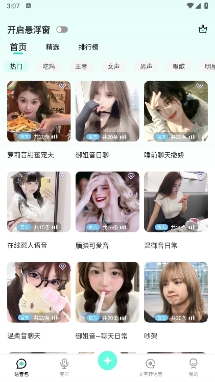 悬浮窗功能:开启该功能后,系统将实时进行录音操作,并同步以变声效果播放录音内容。