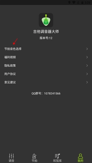 2、选择第一个“节拍音色选择”。