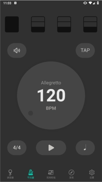 节拍器:主要功能是提供稳定的节奏节拍,辅助用户在练习过程中把握节奏感并进行速度控制。
