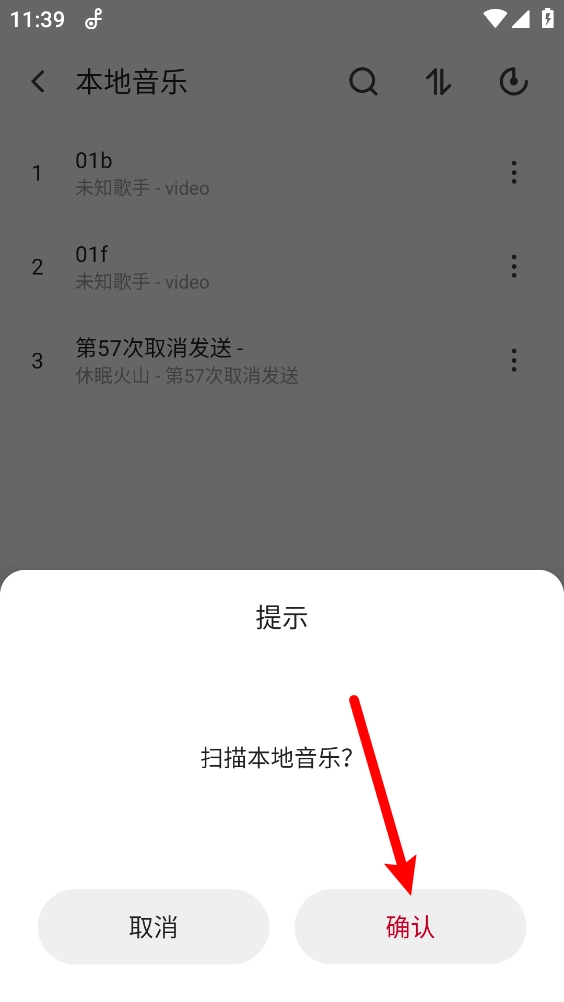 4、弹出提示框点击"确认"进行扫描歌曲。