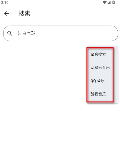 2、如图,输入歌名、歌手或专辑搜索喜欢的歌曲。