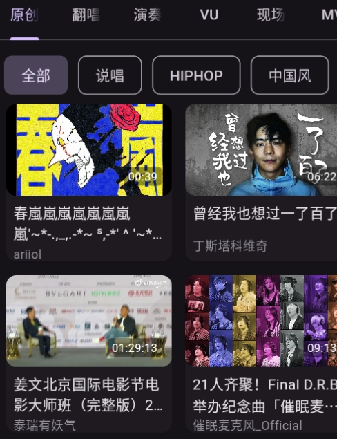 这里面的音乐资源特别丰富,一键就能播放,不管是原唱还是翻唱的mv,都能在里面直接观看。