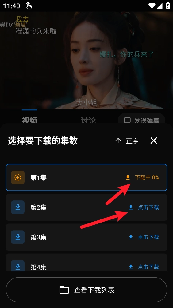 2、如图所示,选择需要的剧集,然后点击右侧的""按钮。