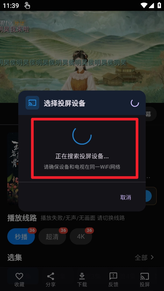 4、如图所示,搜索并连接投屏设备后,即可开启投屏播放。