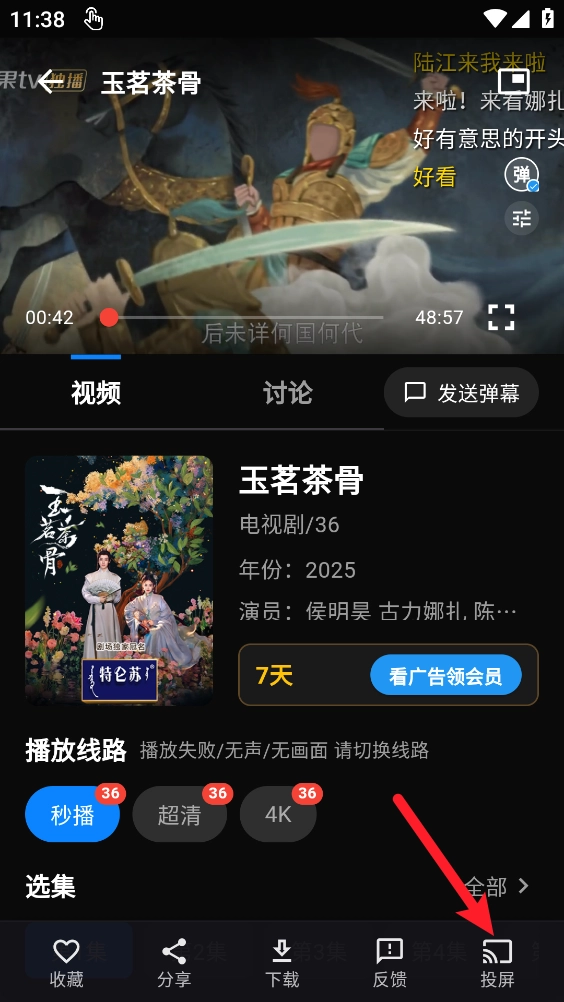 3、进入播放详情页点击屏幕右下角投屏图标。
