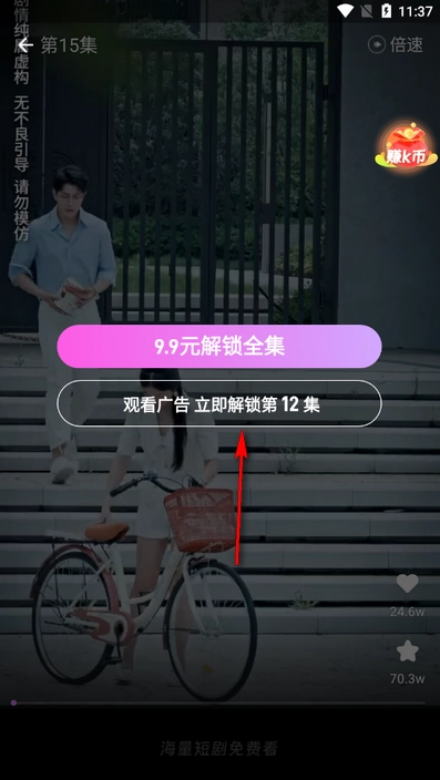 5、后续剧集需观看广告解锁,完成广告观看后,对应的剧集就会解锁。