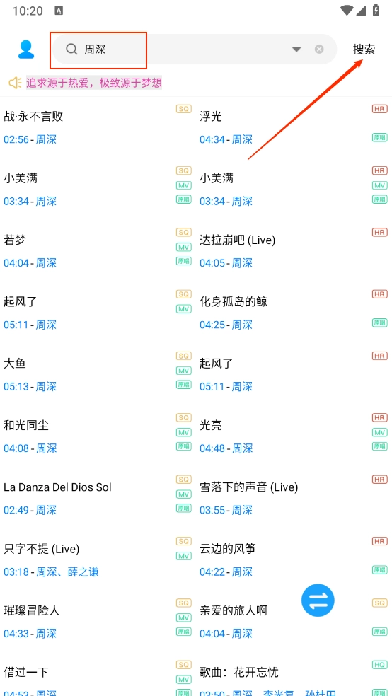 3、你能够借助歌词、关键词或者歌手名这类信息,一键迅速搜索音乐。