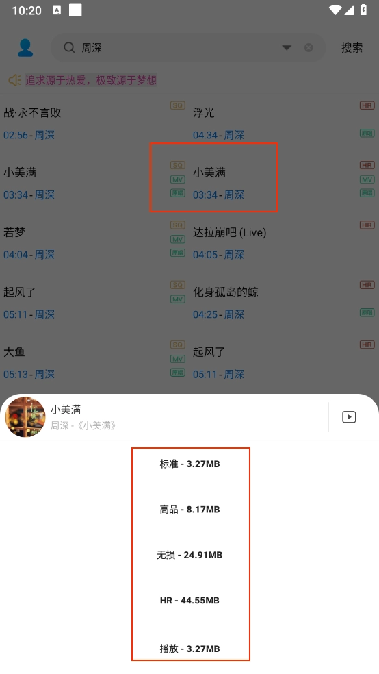 3、一键点击所需歌曲进入,选择相关音质进行即可。